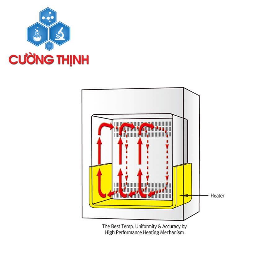 Tủ sấy bằng khí cưỡng bức ThermoStable OF là dòng tủ sấy tiêu chuẩn được ứng dụng rộng rãi trong nhiều lĩnh vực nghiên cứu và sản xuất. Thiết bị hoạt động dựa trên cơ chế đối lưu khí cưỡng bức, đảm bảo luồng không khí nóng được phân bố đều khắp buồng sấy. Kết hợp với vùng gia nhiệt 3 phía (trái – phải – dưới), tủ đạt được độ đồng nhất nhiệt độ và độ ổn định cao nhất trong quá trình vận hành.